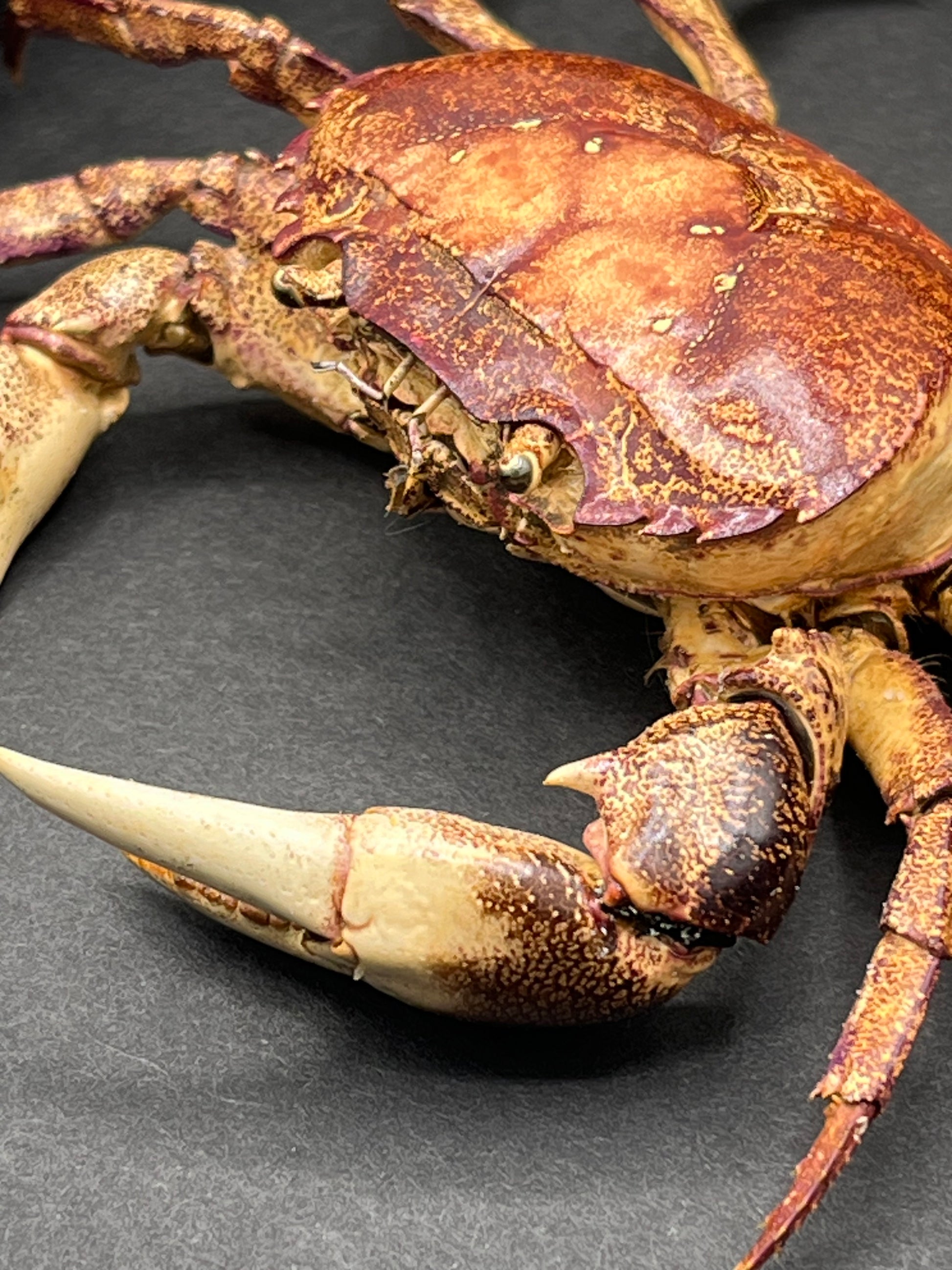 Thai Land Crab in 6x6 inch frame. Esanthelphusa dugasti is native to Thailand Lao, Cambodia and Vietnam. Inhabiting burrows close to fresh water, opportunistic omnivorous feeders. Colour vary from cream to purple/red and in between.