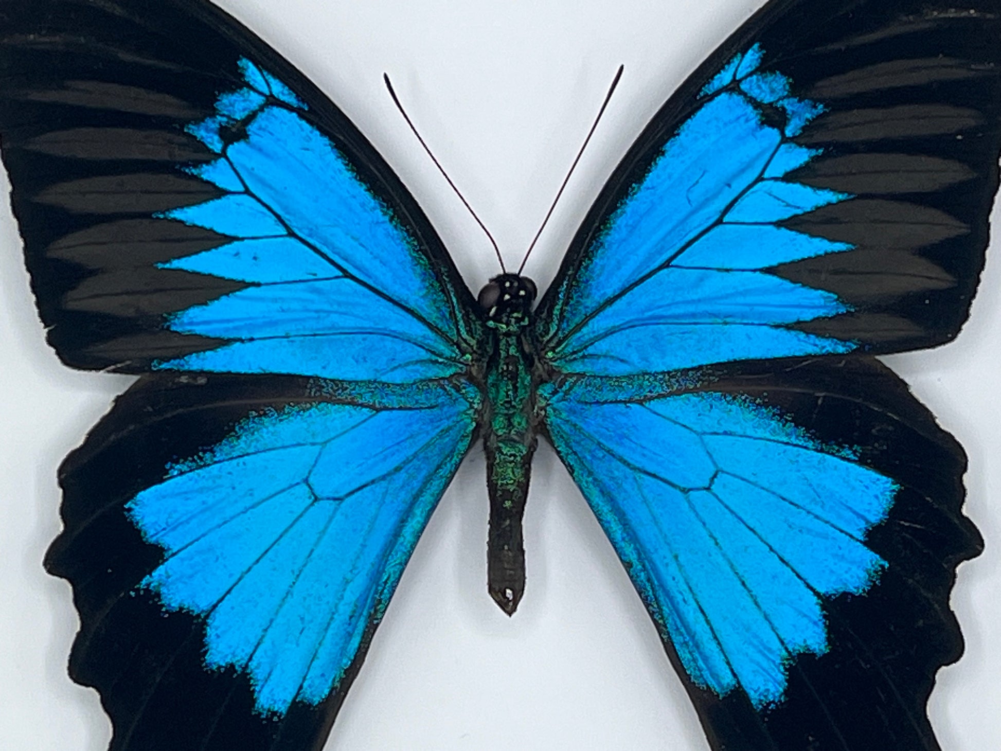 8" x 8" Papilio ulysses, The Ulysses Swallowtail. Found throughout the Indonesian archipelago.